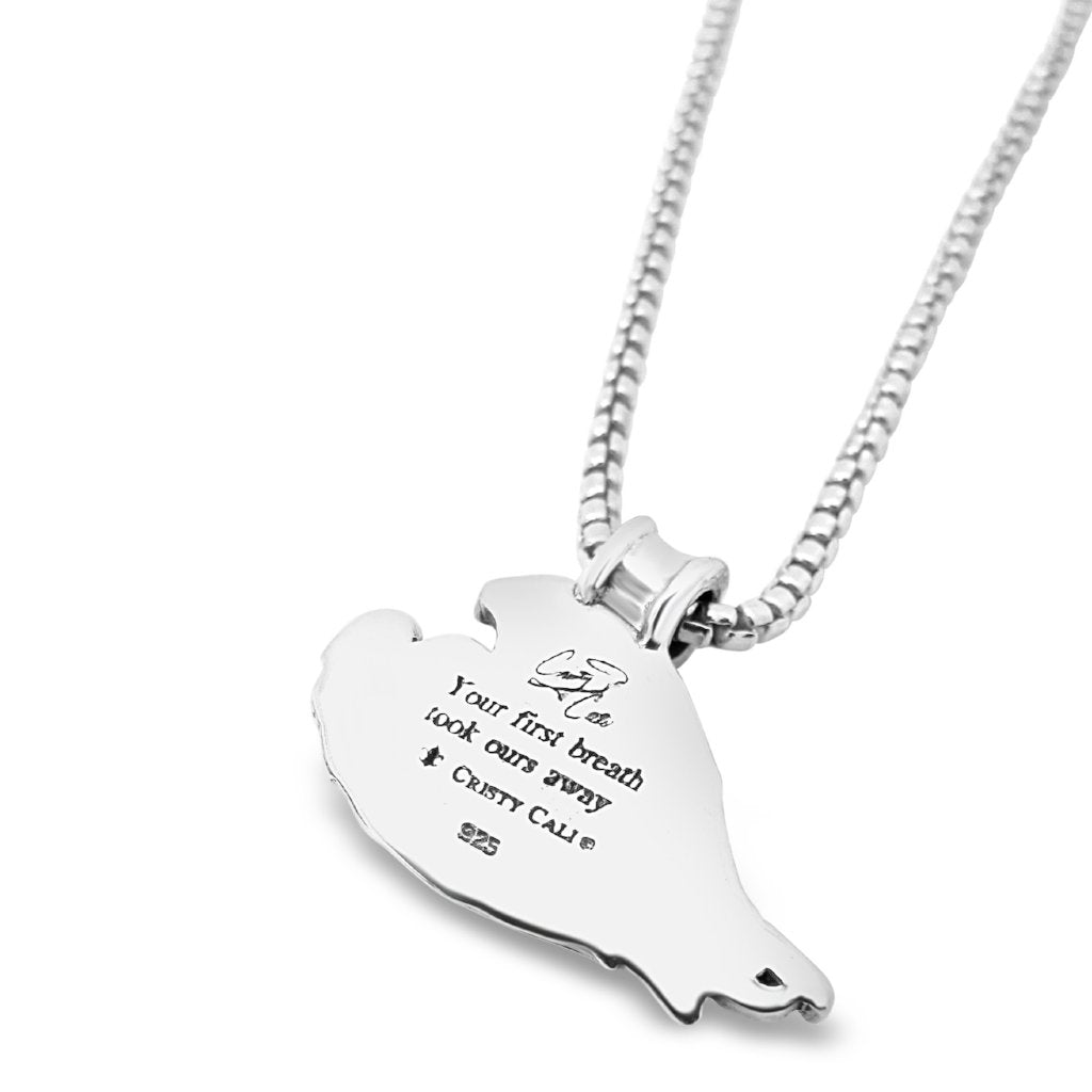 This design is extremely sensitive to some more than others. When I first posted a picture of this design on social media with the inscription of "Your first breath took ours away," as expected, comments began to appear of people tagging friends that may like this piece. But then, other comments appeared such as, "My baby passed away shortly before birth."