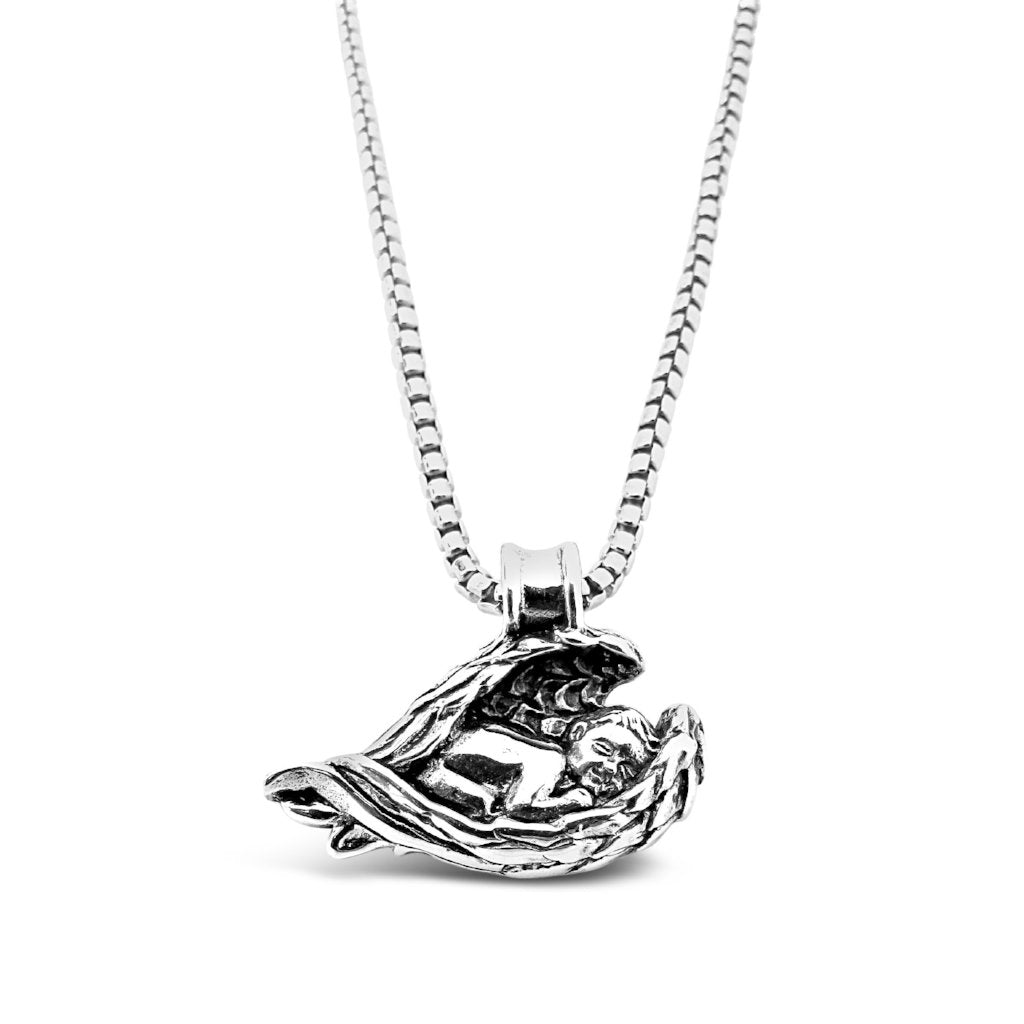 Important note for pendant purchases: Chains are optional, and not included in the pendant purchase price. If you'd like to add the recommended chain, as shown on the picture with the pendant, please select the length you'd like from the drop down menu. If you'd like to add a different kind of chain, please visit the chains category. The Angel Baby was photographed with a Medium Rhodium plated chain because it nicely compliments the dark accents on the pendant. However, this piece would also look nice without the rhodium plating, which is a lighter finish. Can't go wrong with either one!